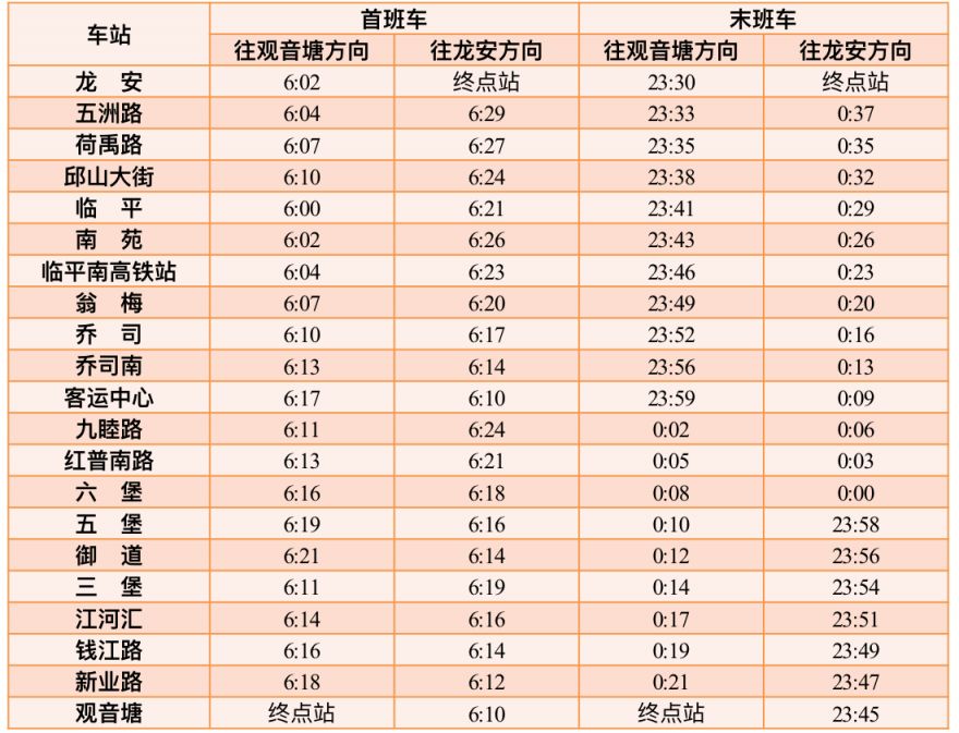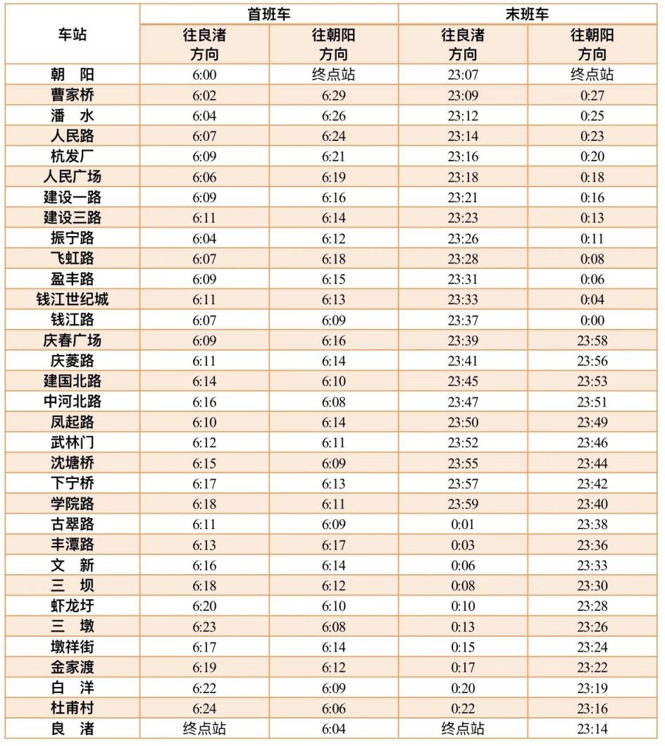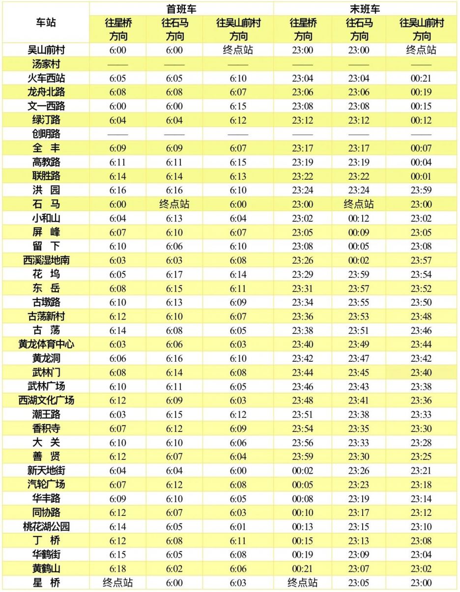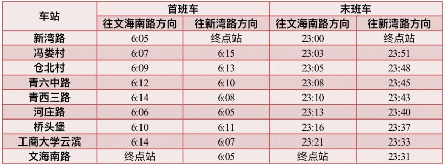 3号线首末班车时间