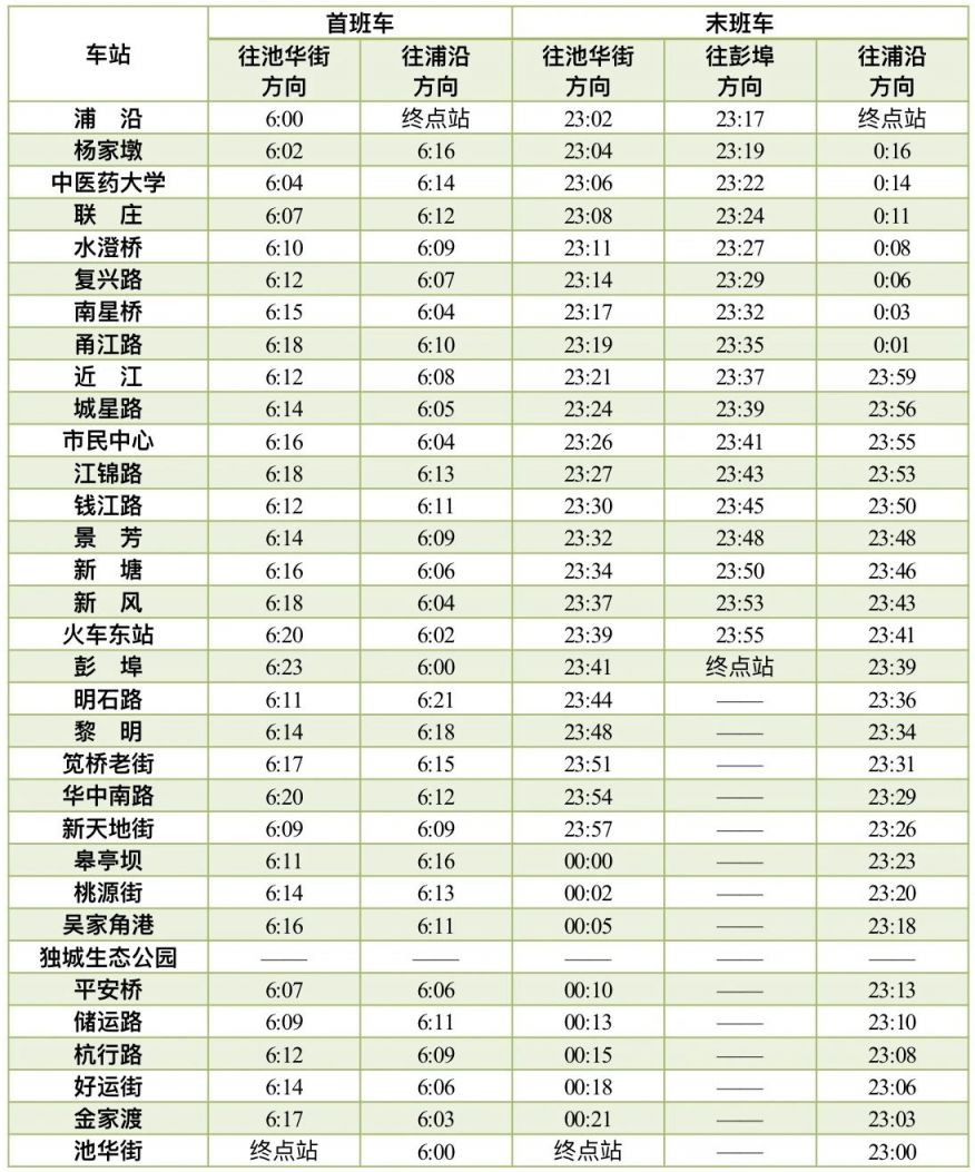 16号线首末班车时间